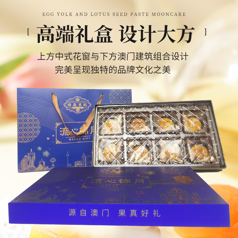 月饼馅种类: 双味(杨枝甘露流心X4+流心奶黄X4)